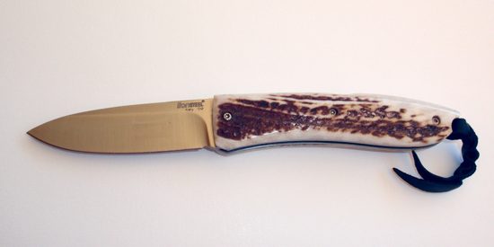 Coltello da caccia con manico in cervo. Lunghezza lama cm 7,5. Lunghezza totale cm 18.